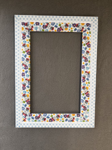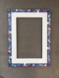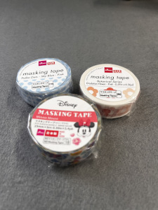 | ③額をじぶんの好きなデザインにしよう | マスキングテープを使って額のふちをかざろう。いろいろなデザインがあるから選ぶのもたのしみだね。(100円ショップで売っているよ。写真はダイソーのマスキングテープ)![]() ![]() ![]() |